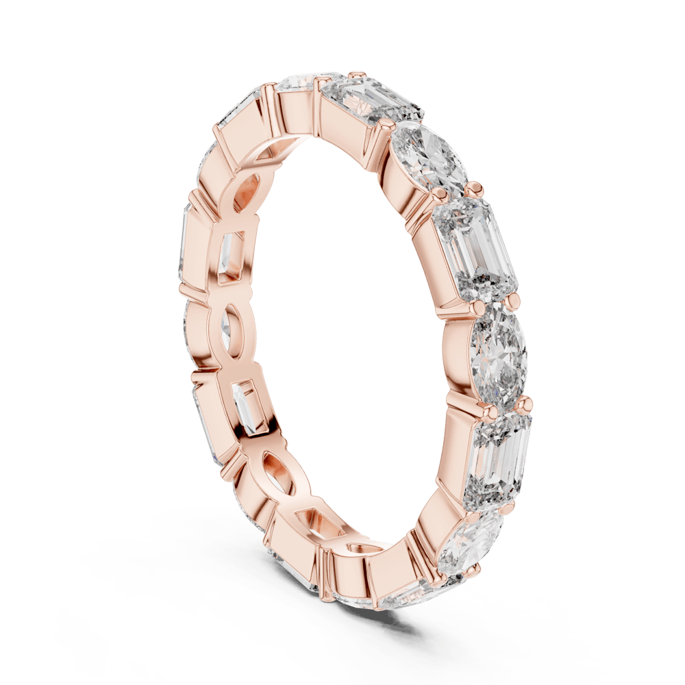 The Alternate Cut Eternity Ring from the Evermore Collection is a poetic celebration of love without end. With alternating oval and emerald-cut diamonds, it captures the beauty of two forms existing in harmony — distinct yet inseparable. Each facet shimmers with quiet brilliance, embodying devotion that endures beyond time. Elegant and everlasting, this ring is a graceful reminder that true love, like light, is infinite.