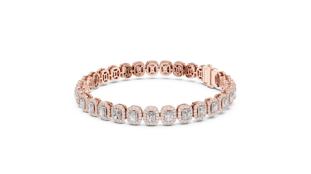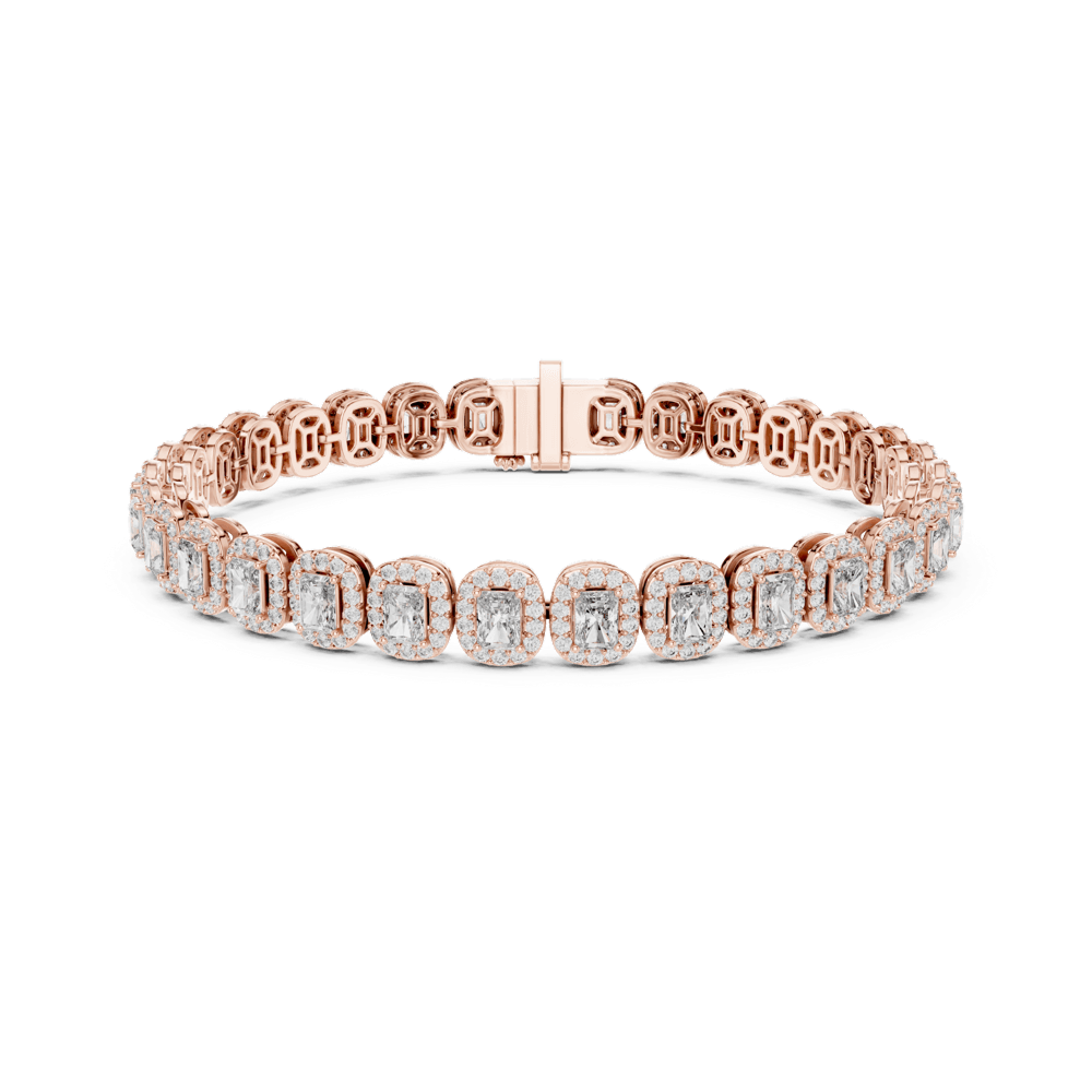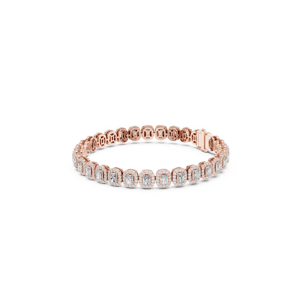 Timeless. Effortless. Endlessly radiant.The Elegance Line Bracelet captures the quiet poetry of everlasting sophistication. A seamless row of meticulously set diamonds reflects a luminous dance of light, while the sleek rose gold silhouette embraces modern minimalism with timeless grace.Each facet is a whisper of refinement — an ode to elegance that transcends trends. Designed to be worn every day or treasured for a lifetime, this bracelet celebrates the beauty of subtle brilliance and enduring allure.