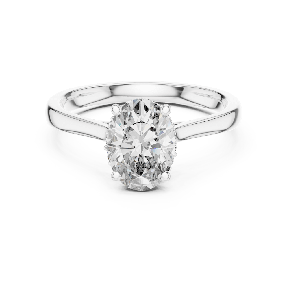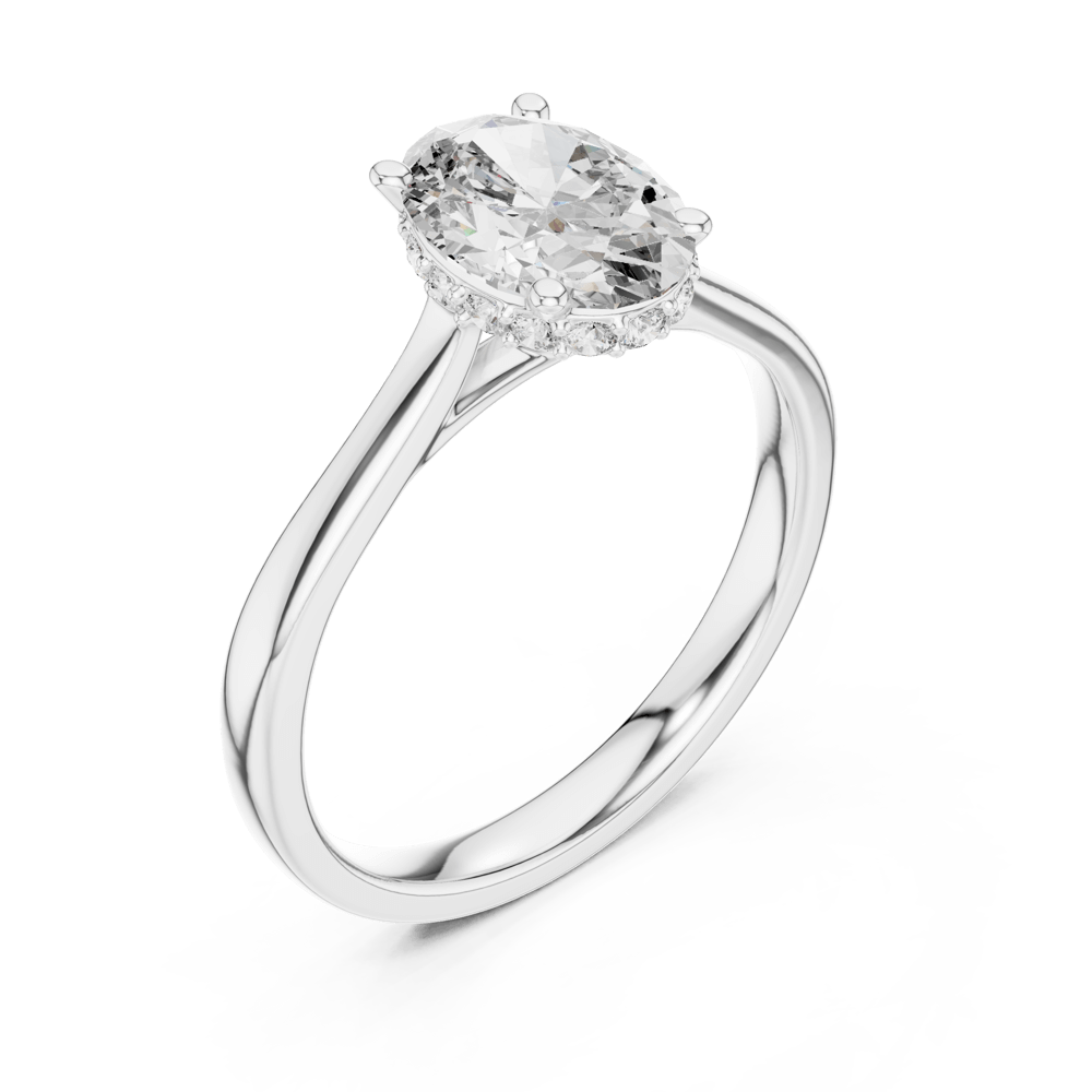 Radiating brilliance from every angle, the Boundless Light Ring is designed to capture eternal elegance. An oval-cut center stone is delicately encircled by a shimmering halo of diamonds, amplifying its fire and sparkle. The smooth, graceful band draws the eye to the luminous centerpiece, creating a refined balance of sophistication and brilliance. A timeless choice for those who believe love and light should shine endlessly.