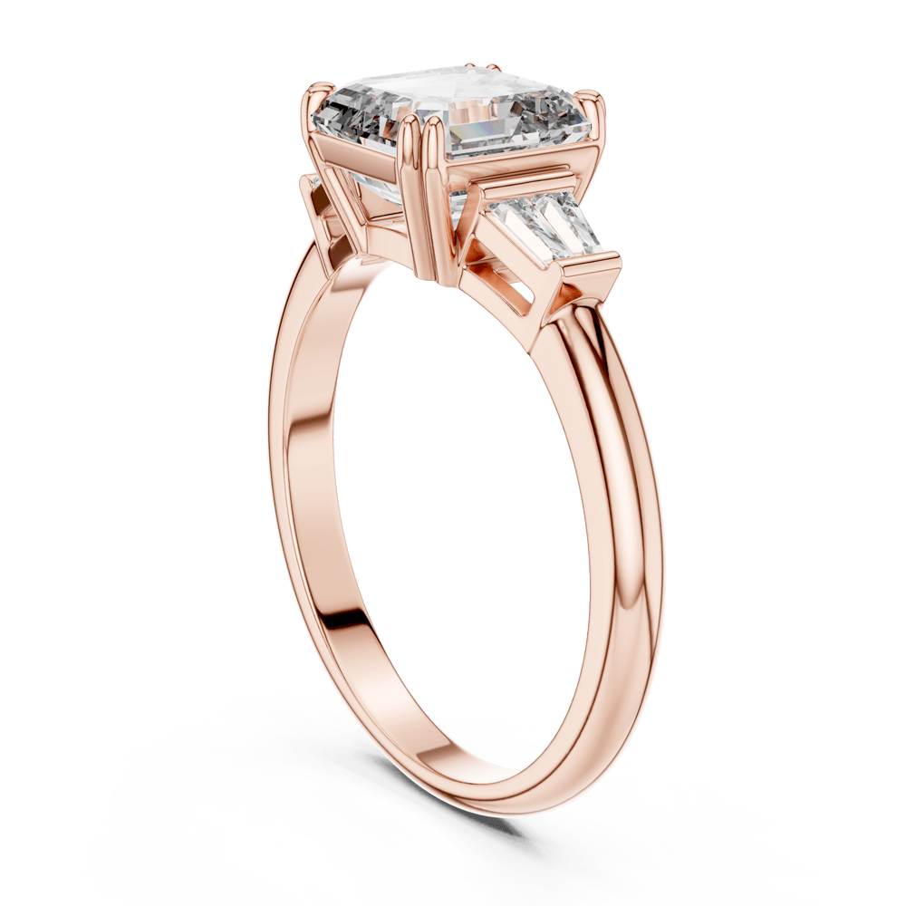 The Deco Emerald Ring is a masterpiece of symmetry and sophistication. Featuring a striking emerald-cut diamond at the center, framed by sleek tapered baguettes on either side, this design captures the timeless charm of Art Deco elegance. Its clean lines and bold geometry make it a powerful statement of refined taste, while the radiant sparkle ensures it never goes unnoticed. A ring that blends classic allure with modern grace — perfect for a love that is strong, balanced, and everlasting.