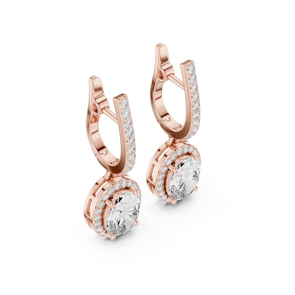 Grace that lasts a lifetime. The Divina Earrings radiate timeless beauty with brilliant round centers encircled by delicate halos, suspended elegantly from diamond-set drops. A piece that captures everlasting light and love, crafted for moments that deserve to be remembered forever.