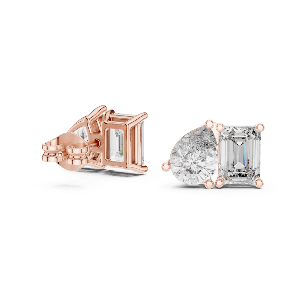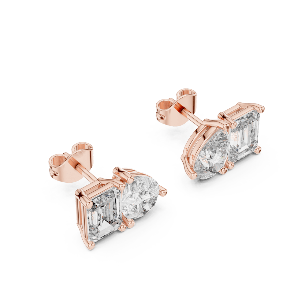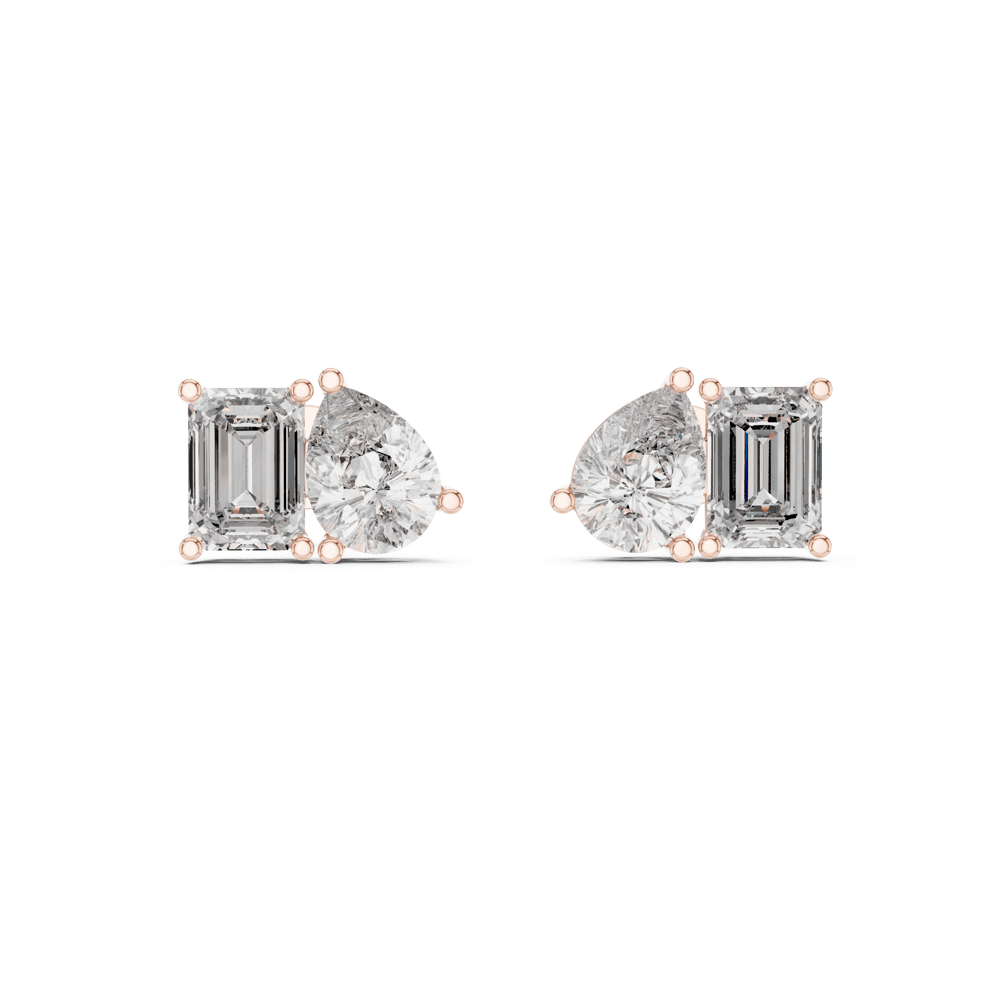 The Double Brilliance Studs redefine radiance with a duo of striking diamond cuts—pear and emerald—set side by side in perfect harmony. This pairing symbolizes balance and duality, offering a bold yet timeless elegance that reflects everlasting brilliance. A statement piece from the Evermore Collection, crafted for those who shine twice as bright.