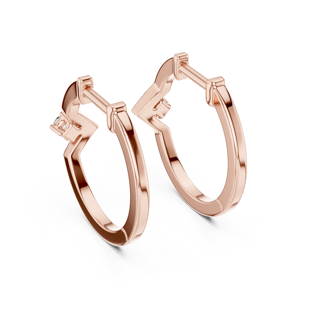 The Edgy Hoops redefine modern sophistication with their delicate design. Featuring bezel-set diamonds in a striking arrangement, these hoops are crafted to make a statement while maintaining elegance. Part of the Noor Collection, they embody contemporary brilliance—perfect for those who love jewelry that stands out with confidence and style.