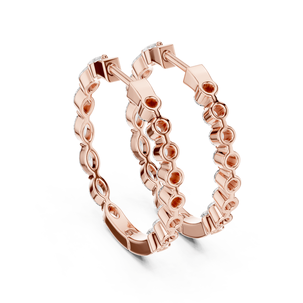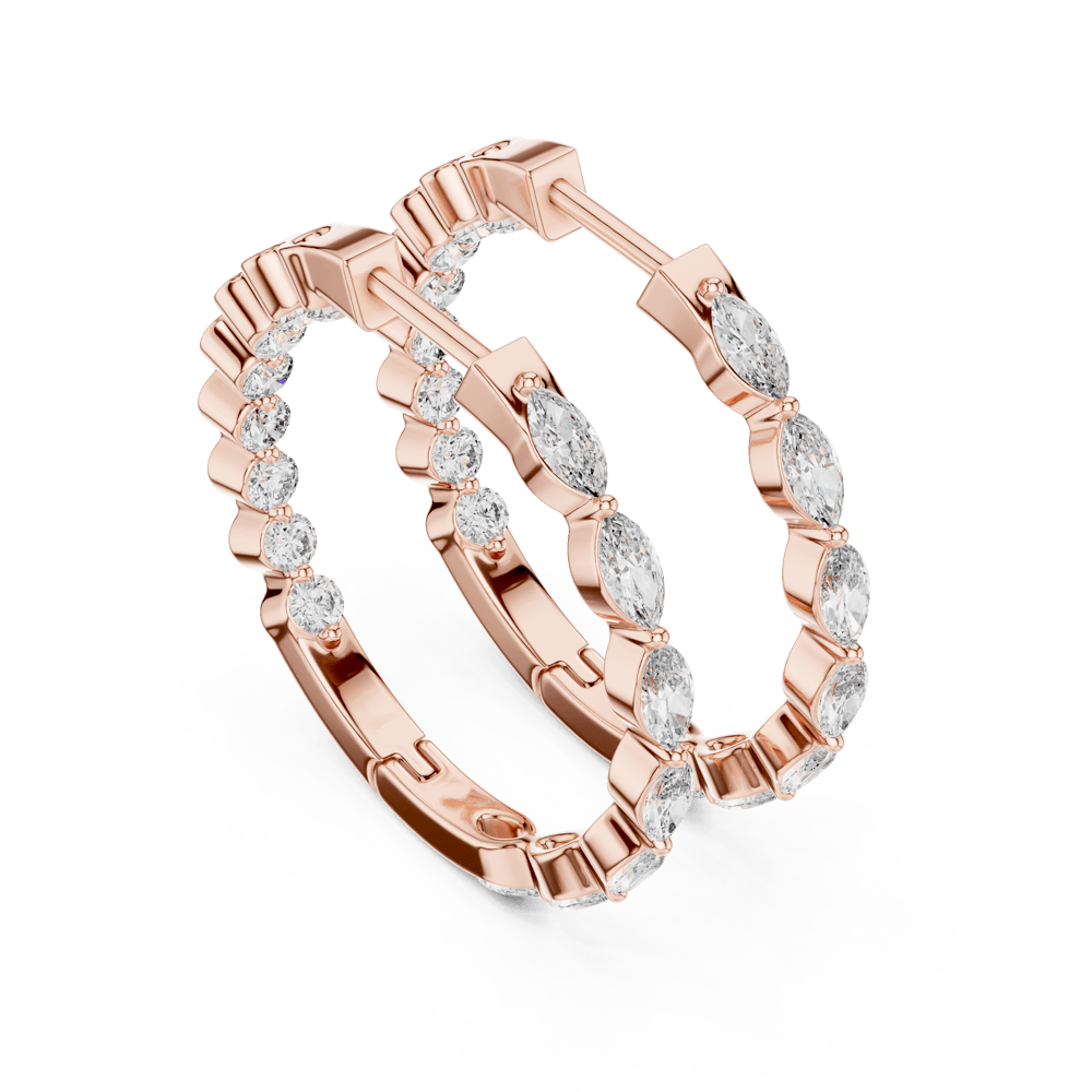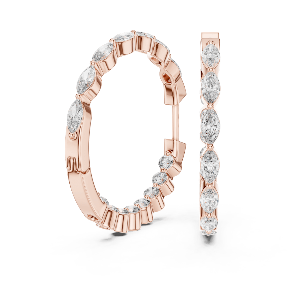 From our Zenith Collection, the Elongated Hoops are designed to command attention. Featuring alternating marquise and round diamonds, their unique silhouette brings both brilliance and drama. Bold yet refined, these hoops are crafted for those who embrace their individuality with confidence and style.