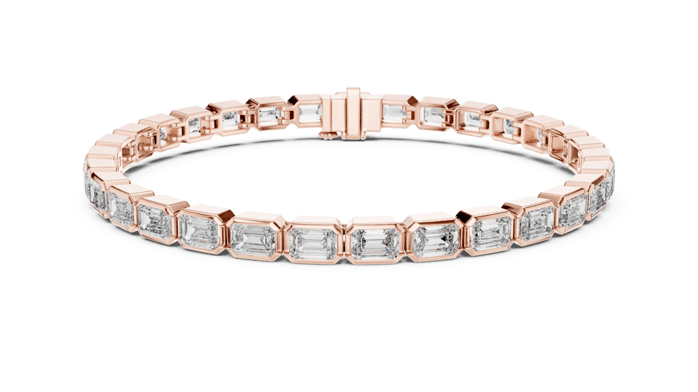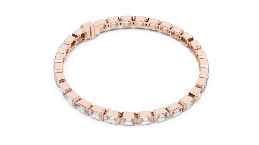 A symphony of precision and prestige, the Emerald Grace Bracelet embodies the essence of quiet power. Each emerald-cut diamond is meticulously set in a seamless continuum, capturing light with architectural perfection and timeless allure. Crafted in luminous rose gold, this bracelet reflects the poise of modern royalty — bold yet understated, graceful yet commanding.