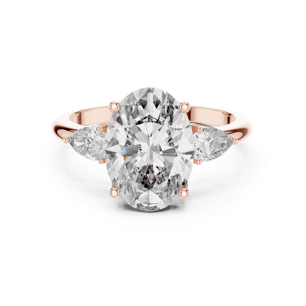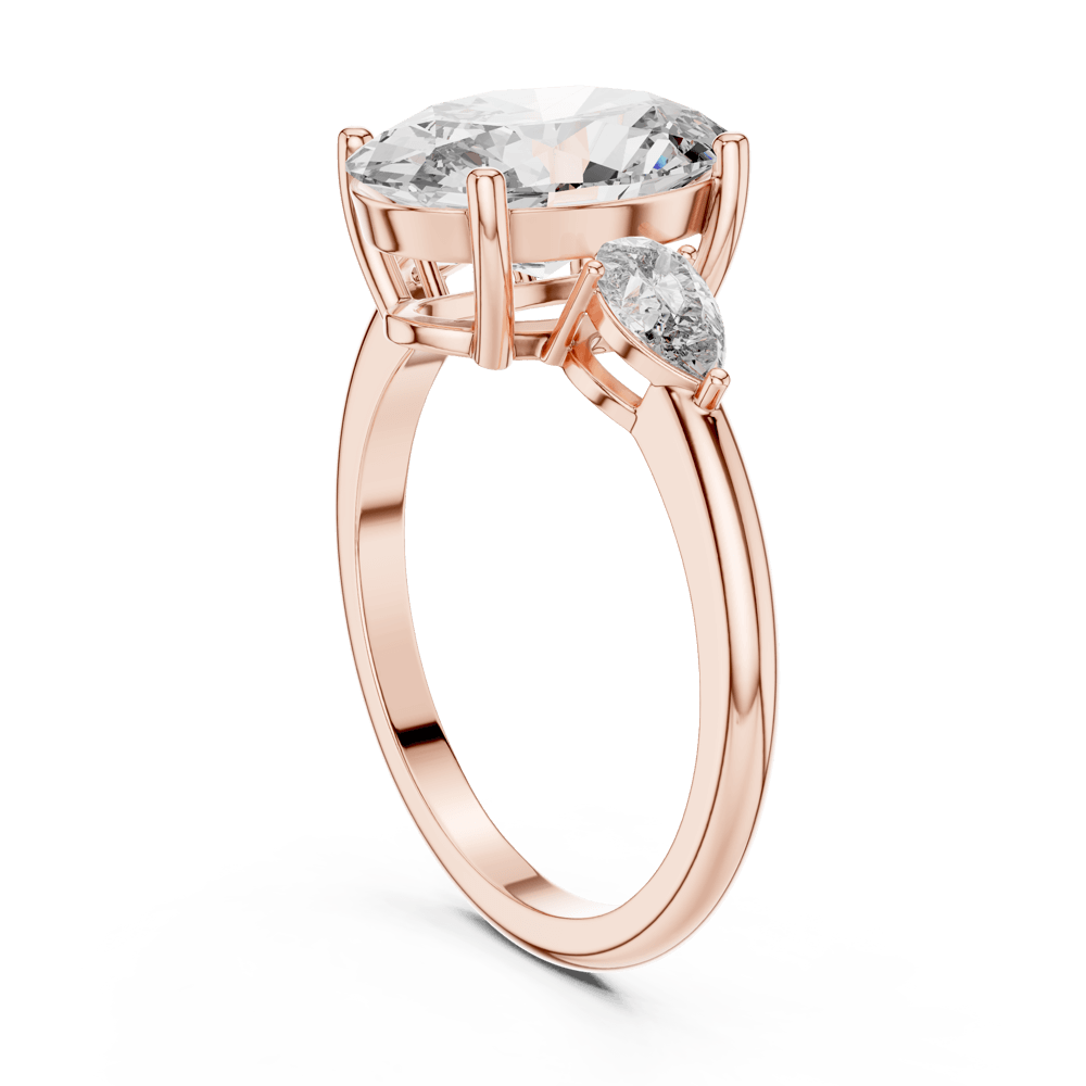 The Eterna Three Ring is a breathtaking symbol of past, present, and future love. Featuring a magnificent oval-cut center diamond, flanked by two pear-shaped side stones, this ring radiates balance and brilliance from every angle. The gentle taper of the design enhances the center stone’s fire, while the side diamonds add a graceful flow of light. A timeless statement of elegance, the Eterna Three Ring is crafted for those who believe in love that shines endlessly.