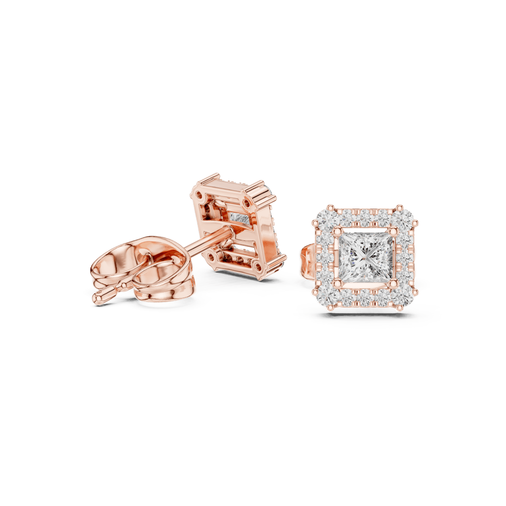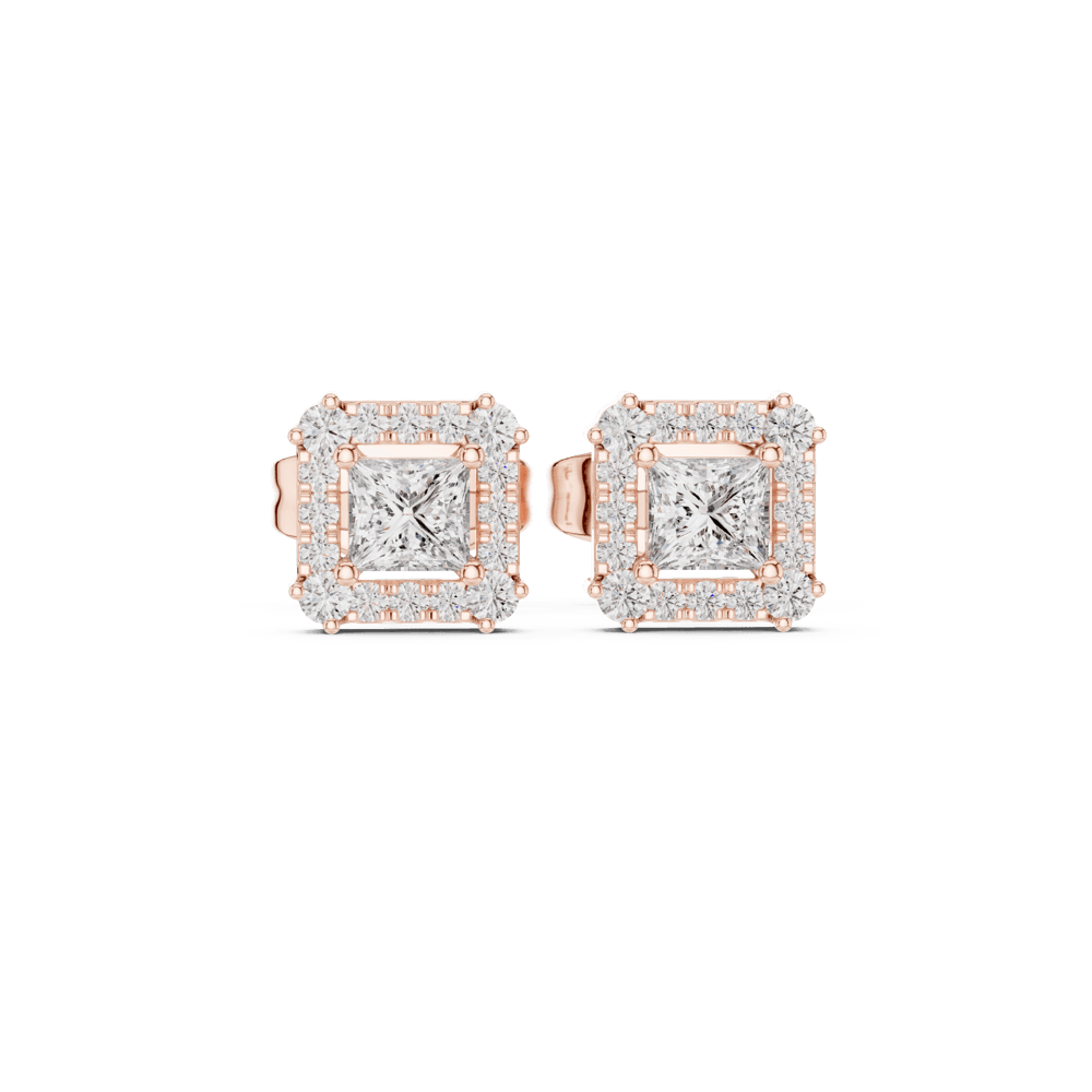 Step into timeless glamour with the Gatsby Glow Earrings. Featuring a princess-cut center framed by layers of shimmering pavé halos, these studs radiate sophistication and bold brilliance. Their clean, angular lines and luminous sparkle make them the perfect choice for those who embrace elegance with confidence. A statement of modern luxury, crafted to shine from every angle.