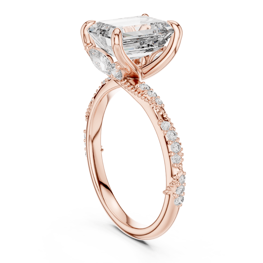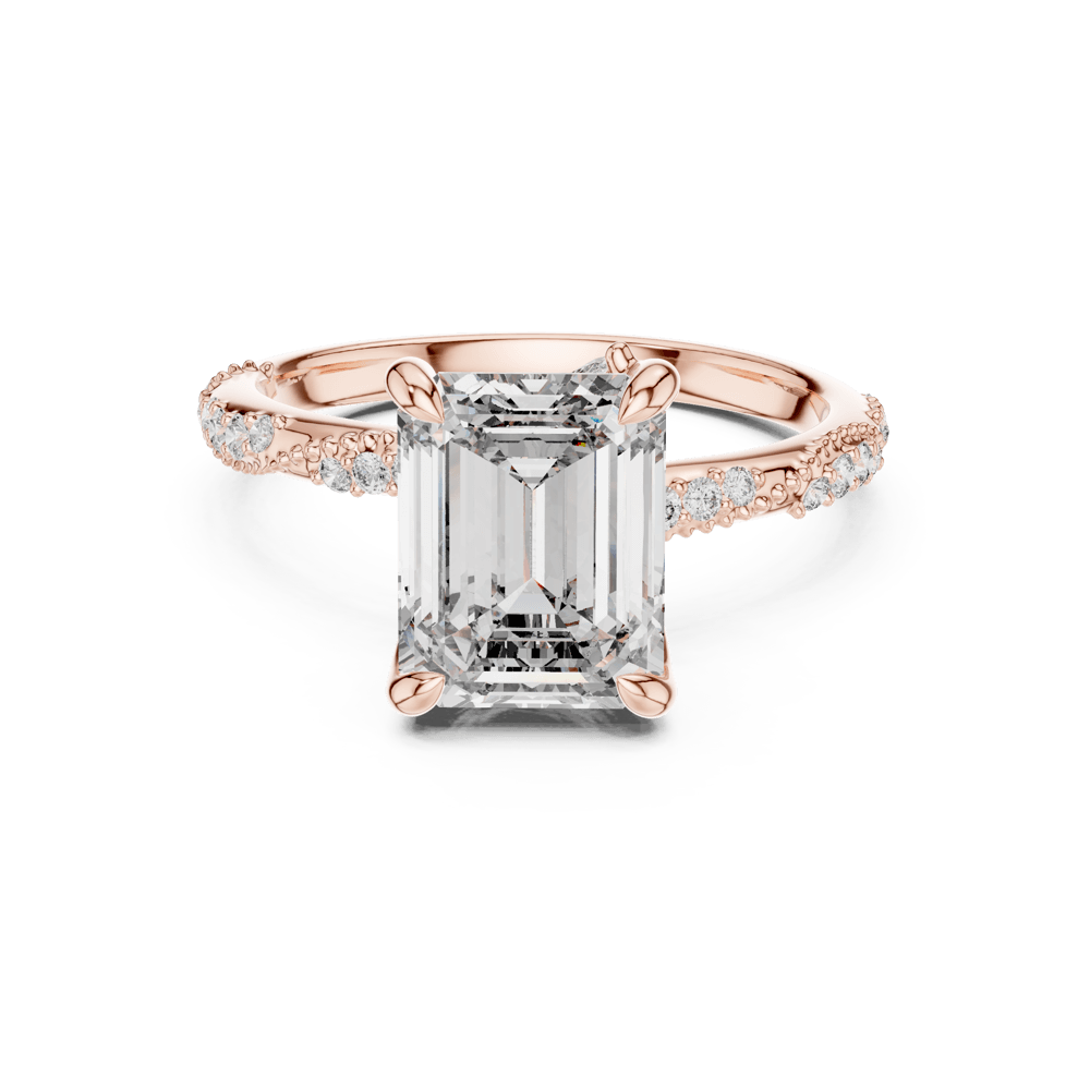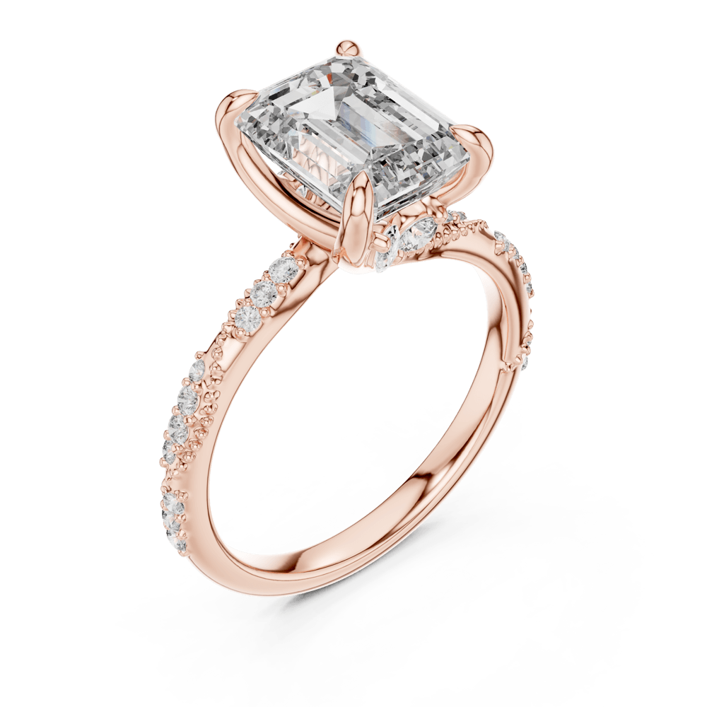 The Golden Crest Ring from the Evermore Collection embodies strength, grace, and enduring beauty. Its bold emerald-cut center diamond reflects confidence, while the delicate pavé band adds a touch of soft radiance. Every facet tells a story of devotion that stands tall — love that’s unshakable, luminous, and everlasting. A statement of elegance destined to shine through every chapter of forever.