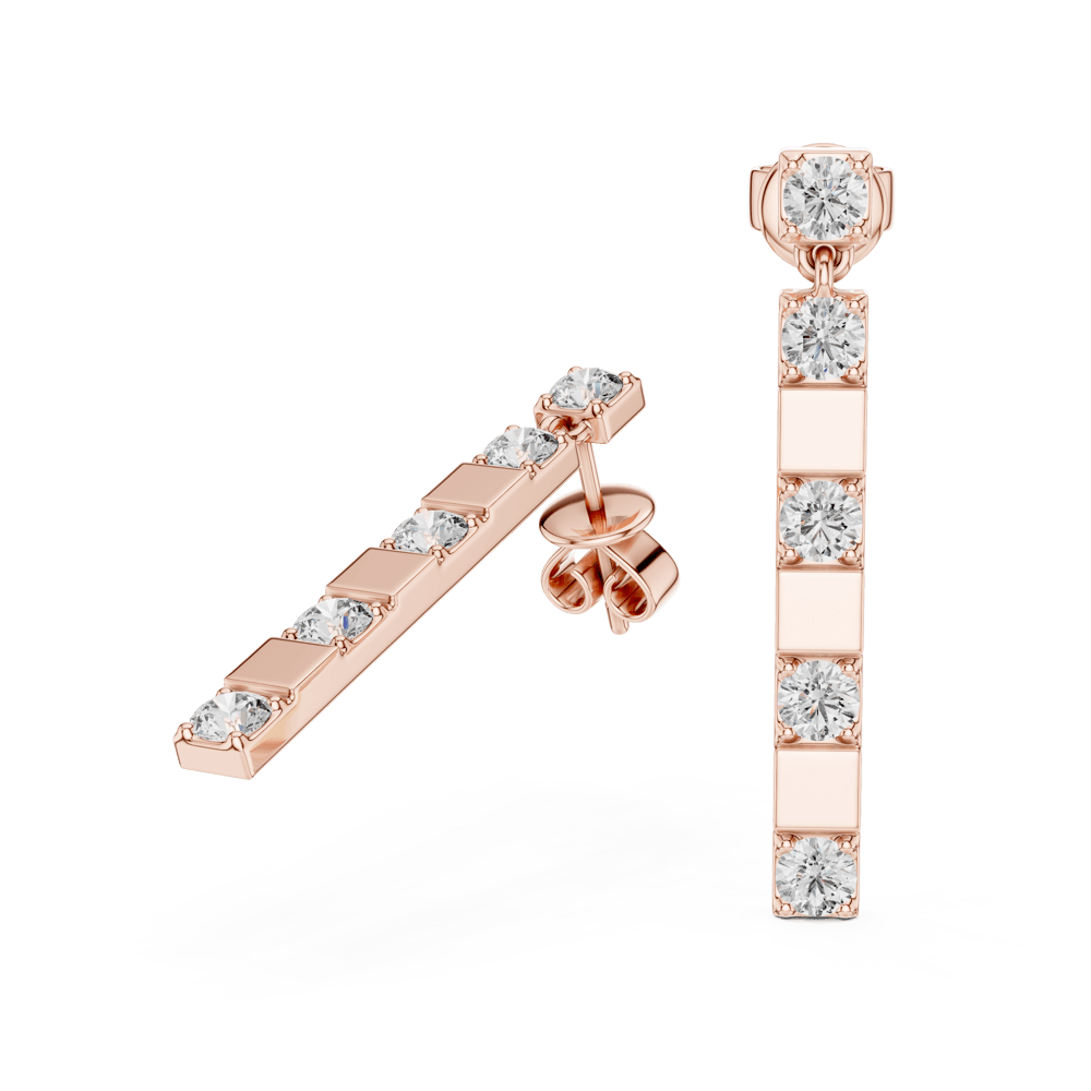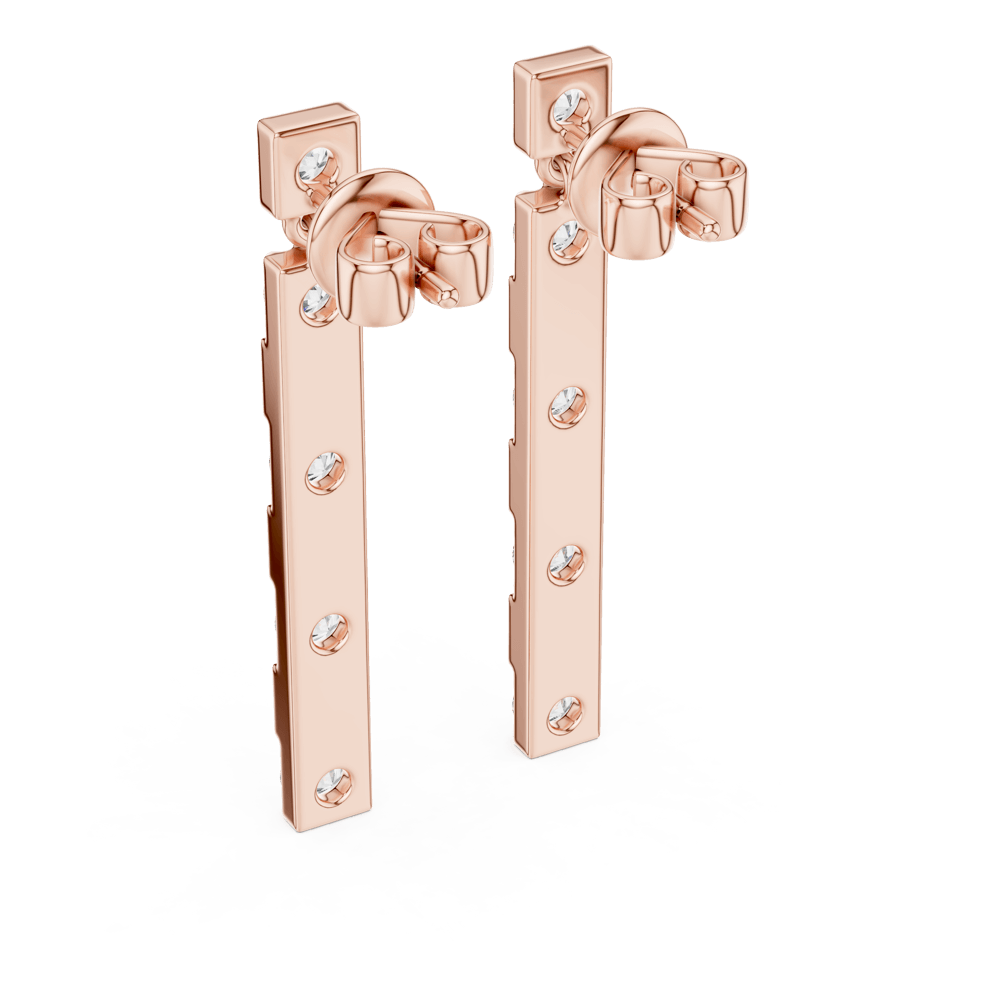 From the Noor Collection, the Linear Earrings are sleek and striking, with a straight row of diamonds set in perfect symmetry. Their clean vertical design exudes confidence and modern sophistication, making them a perfect choice for both day and evening wear.