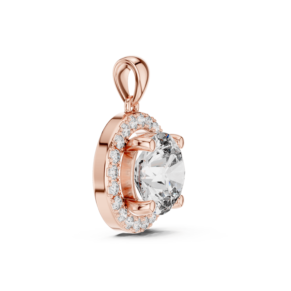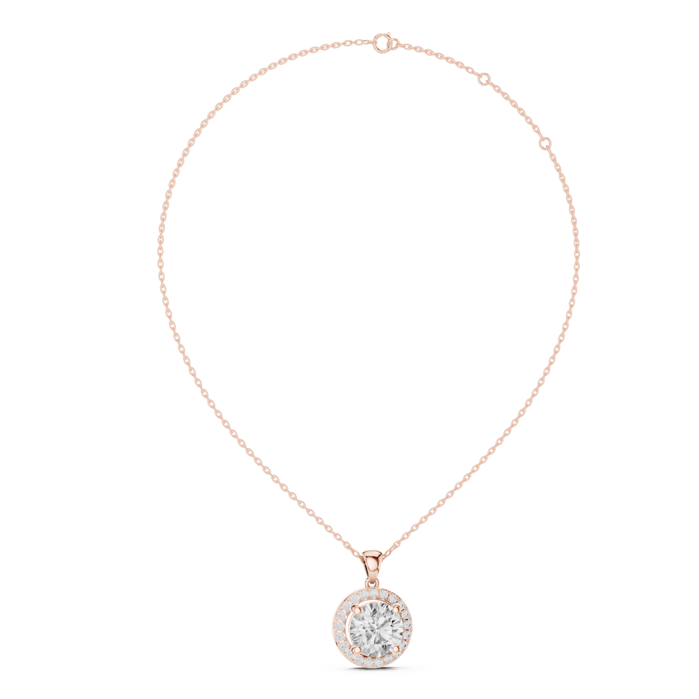 From the Eminence Collection — The Lustre Halo Pendant embodies luxury at its finest. A magnificent round diamond is encircled by a halo of brilliance, creating an opulent display of fire and light. Representing grandeur and refinement, this pendant transforms any look into one of unmatched sophistication.