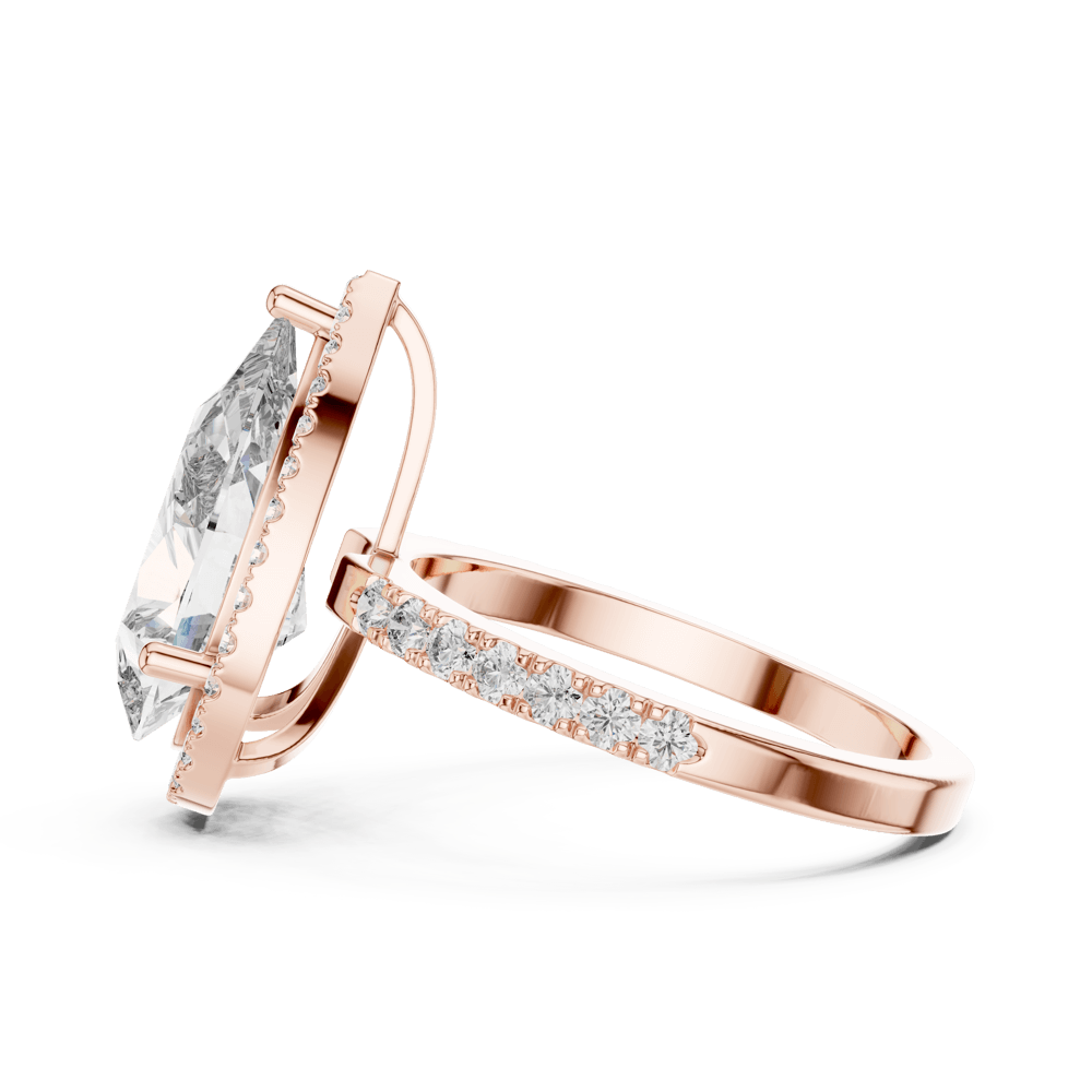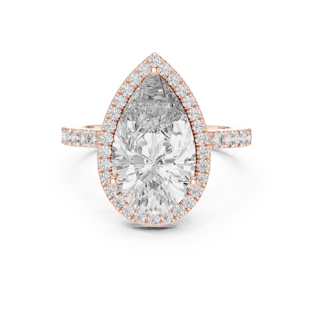 The Pear Glow Ring is a radiant masterpiece that brings together elegance and brilliance. Featuring a stunning pear-shaped center stone embraced by a halo of luminous diamonds, this design enhances the stone’s fire and sparkle from every angle. The pavé-set band adds an extra layer of shimmer, creating a graceful flow of light with every movement. A modern classic, this ring is crafted to symbolize love’s timeless glow and is perfect for those who desire a blend of sophistication and brilliance.
