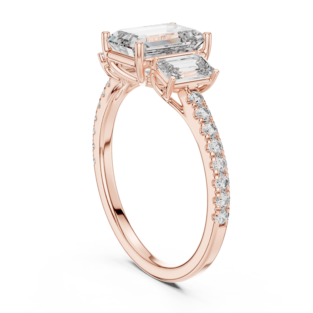 The Prestige Emerald Ring from our Eminence Collection is a true masterpiece of bridal elegance. With a commanding emerald-cut center diamond flanked by two exquisite side stones, this ring celebrates the beauty of the past, present, and future. Designed for those who seek grandeur and meaning in every detail, it’s the perfect symbol of an enduring love story.