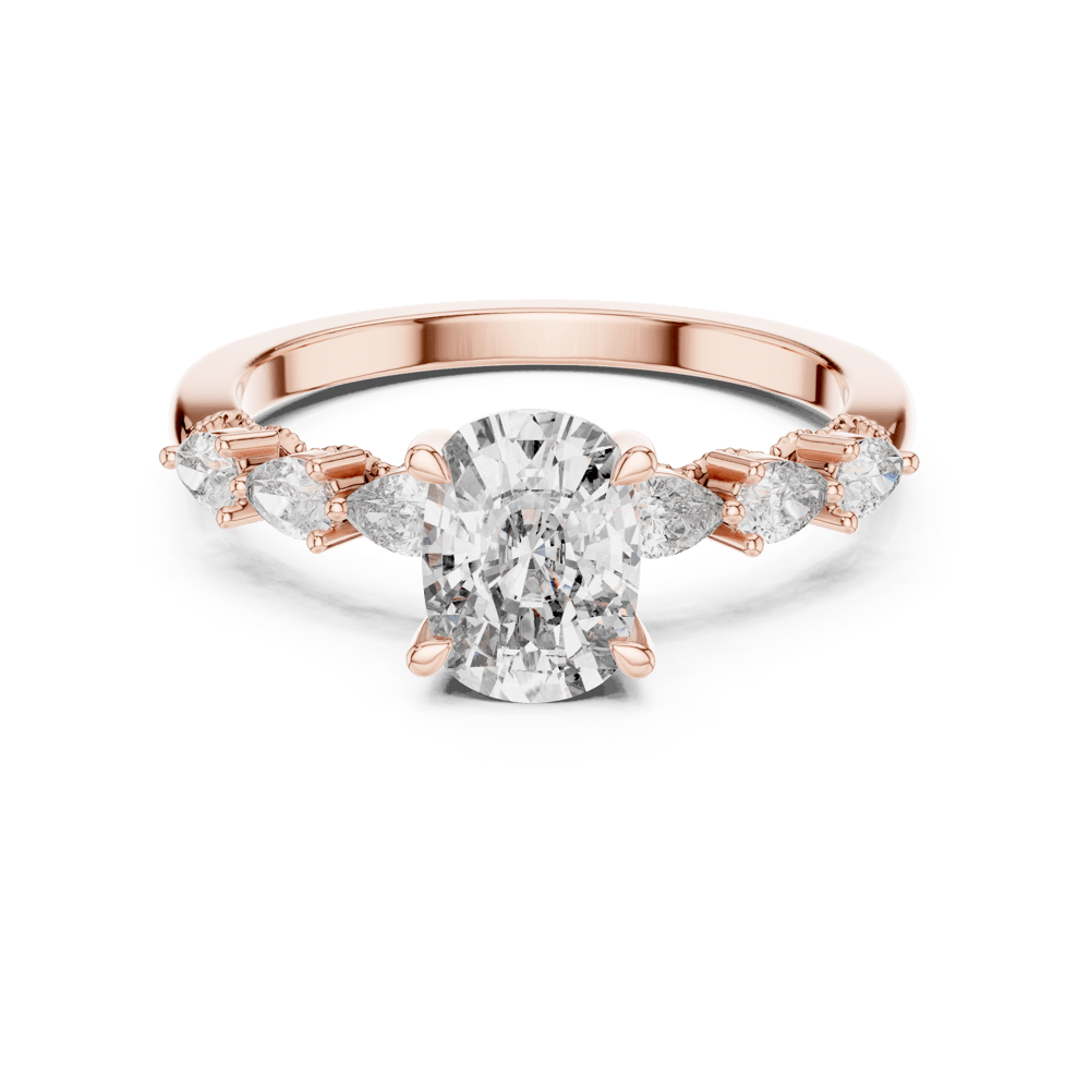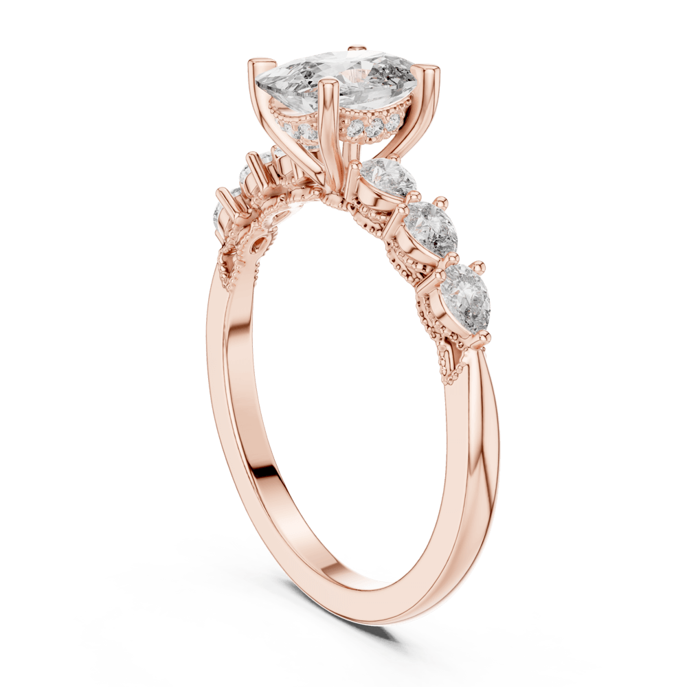 The Pure Elegance Ring from the Evermore Collection captures the beauty of simplicity refined to perfection. A luminous oval center diamond takes the spotlight, flanked by a graceful trail of side stones that exude harmony and grace. With its delicate balance of brilliance and poise, this design celebrates love in its purest form — eternal, effortless, and evermore radiant.