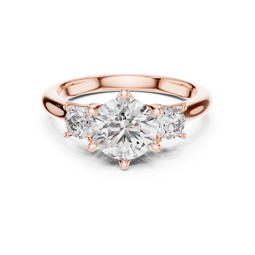 The Round Trio Ring from the Eminence Collection is a radiant celebration of love’s journey. Featuring a brilliant round center diamond flanked by two equally dazzling side stones, this design captures the harmony of past, present, and future. With its elegant silhouette and timeless sparkle, it’s a ring crafted for everlasting romance.