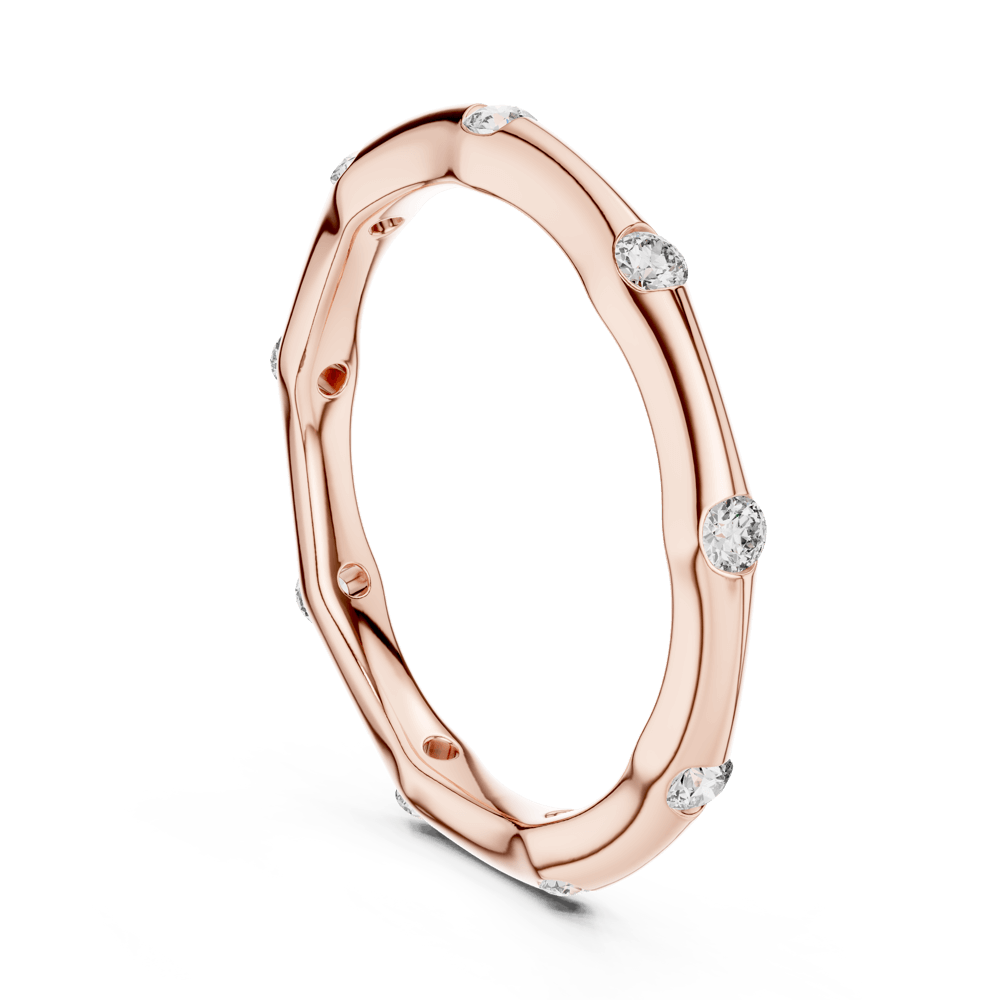 The Starlit Wave Band captures the poetry of light in motion. Its gentle wave silhouette is adorned with scattered diamonds that shimmer like stars across a night sky. Delicate yet radiant, this band embodies the Noor philosophy of effortless elegance and luminous beauty. Perfect worn solo for a refined statement or stacked to add layers of brilliance, it’s a timeless piece that celebrates subtle sparkle in every glance.