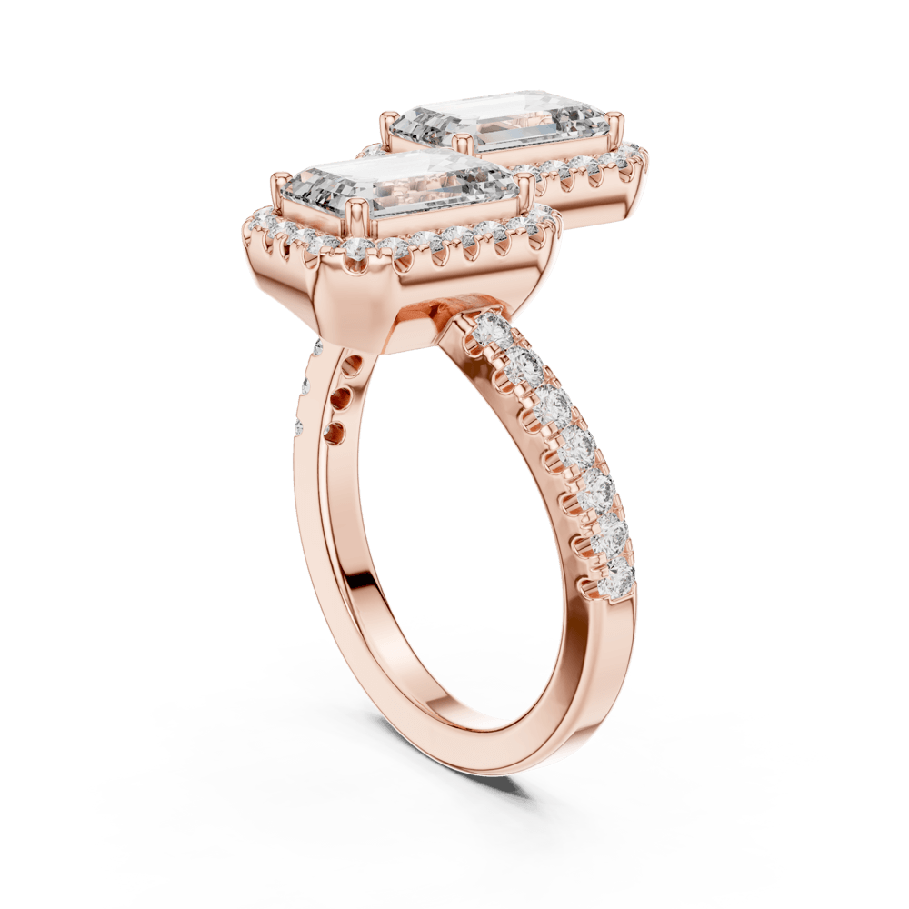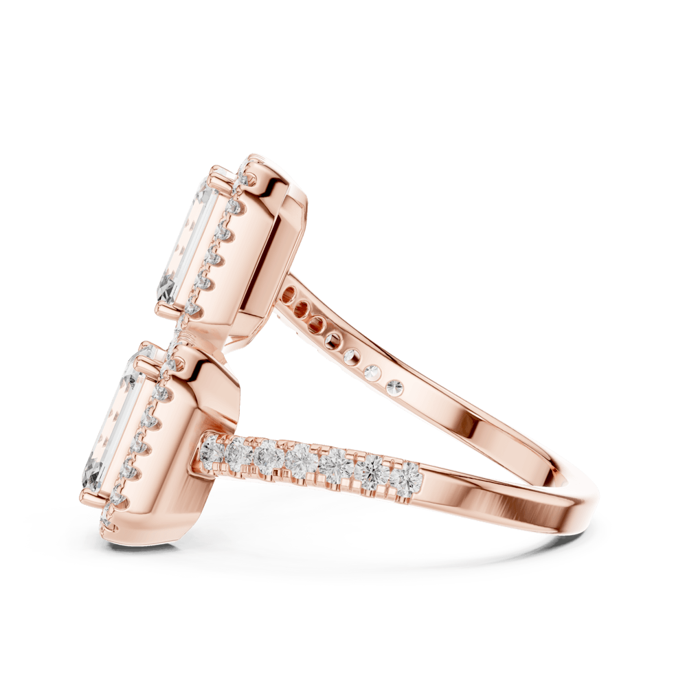 A bold masterpiece with dual emerald-cut halos, this ring creates a dazzling symphony of light. Crafted for those who embrace prestige and power, it embodies the essence of the Eminence Collection — statement jewelry that speaks of confidence, luxury, and grandeur.