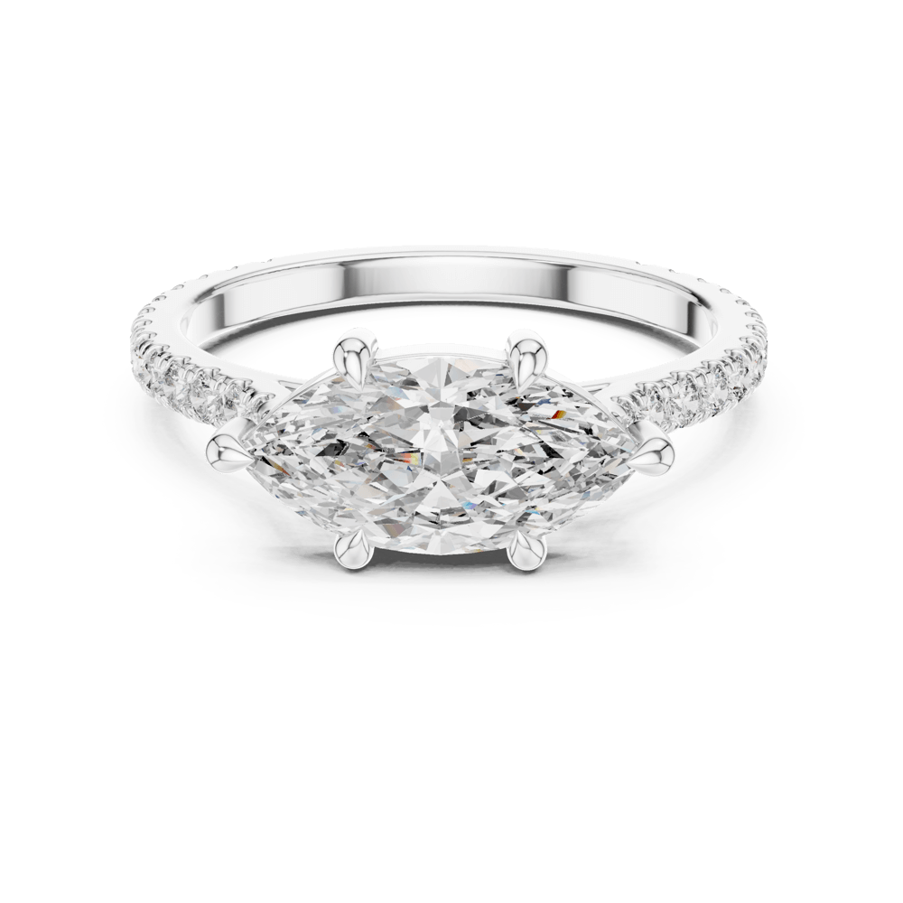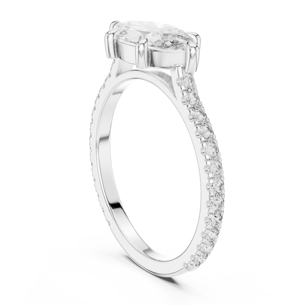 The Amaris Ring from the Noor Collection radiates ethereal elegance. Its oval solitaire, cradled by a glistening pavé band, glows with a soft, timeless allure — a reflection of love that shines from within. Designed for those who carry light in their hearts, this piece embodies serenity, purity, and everlasting grace — the essence of Noor.