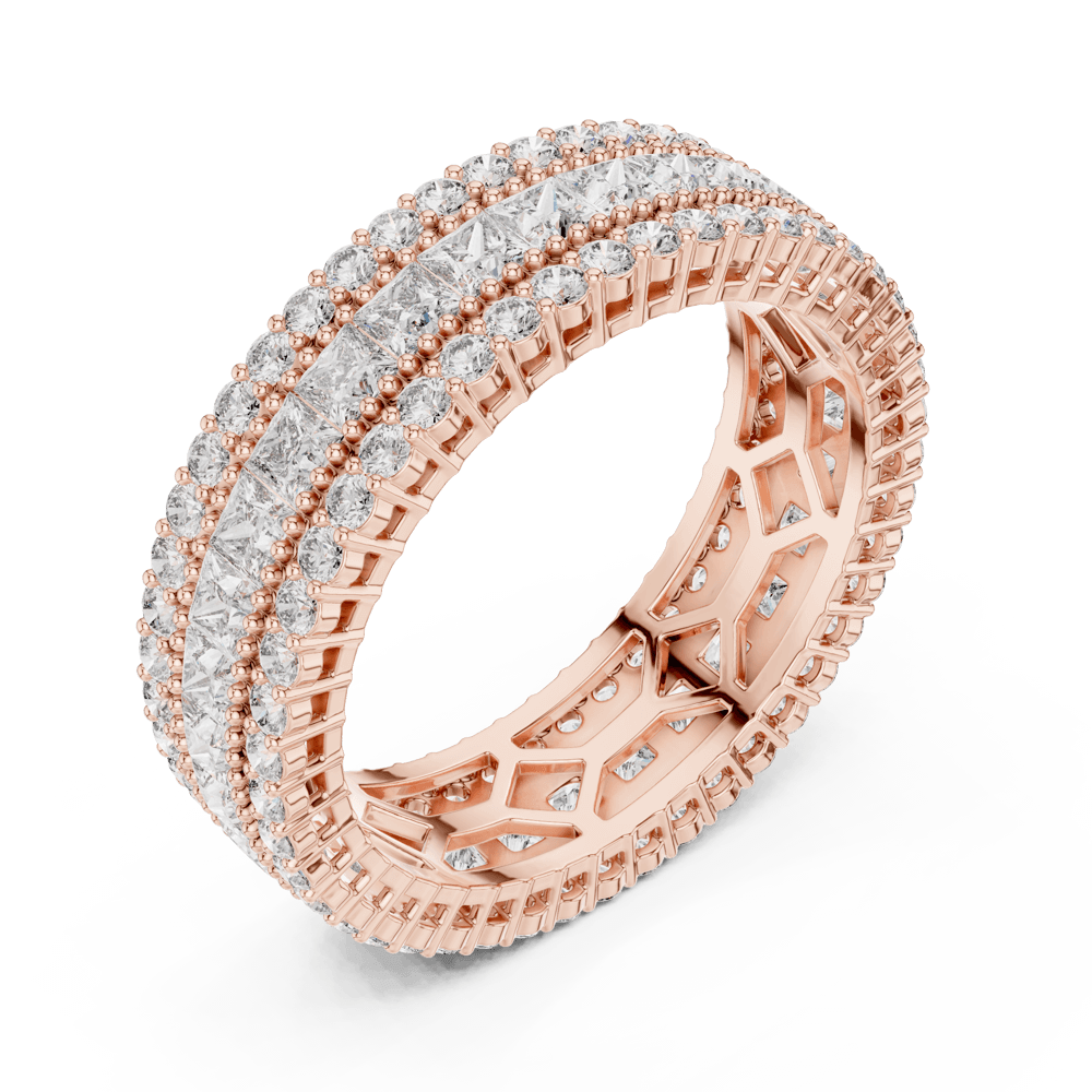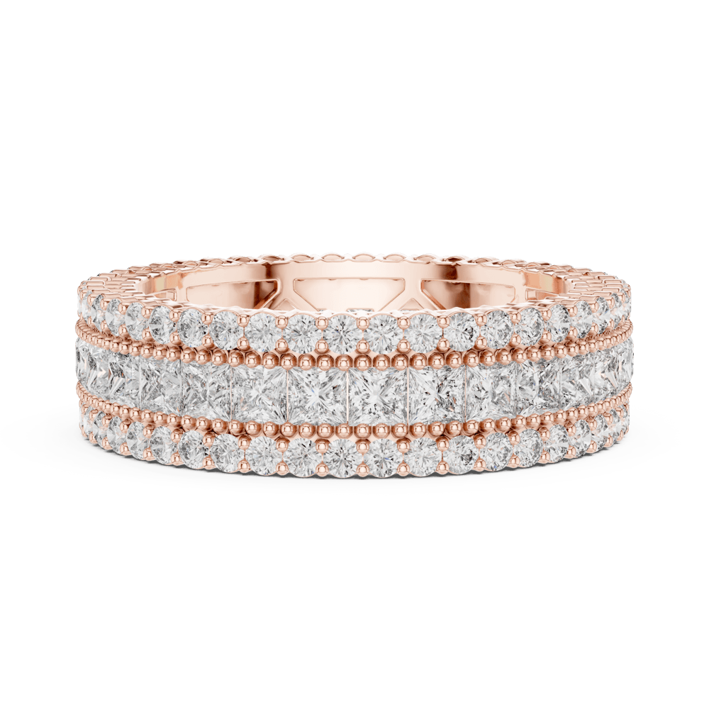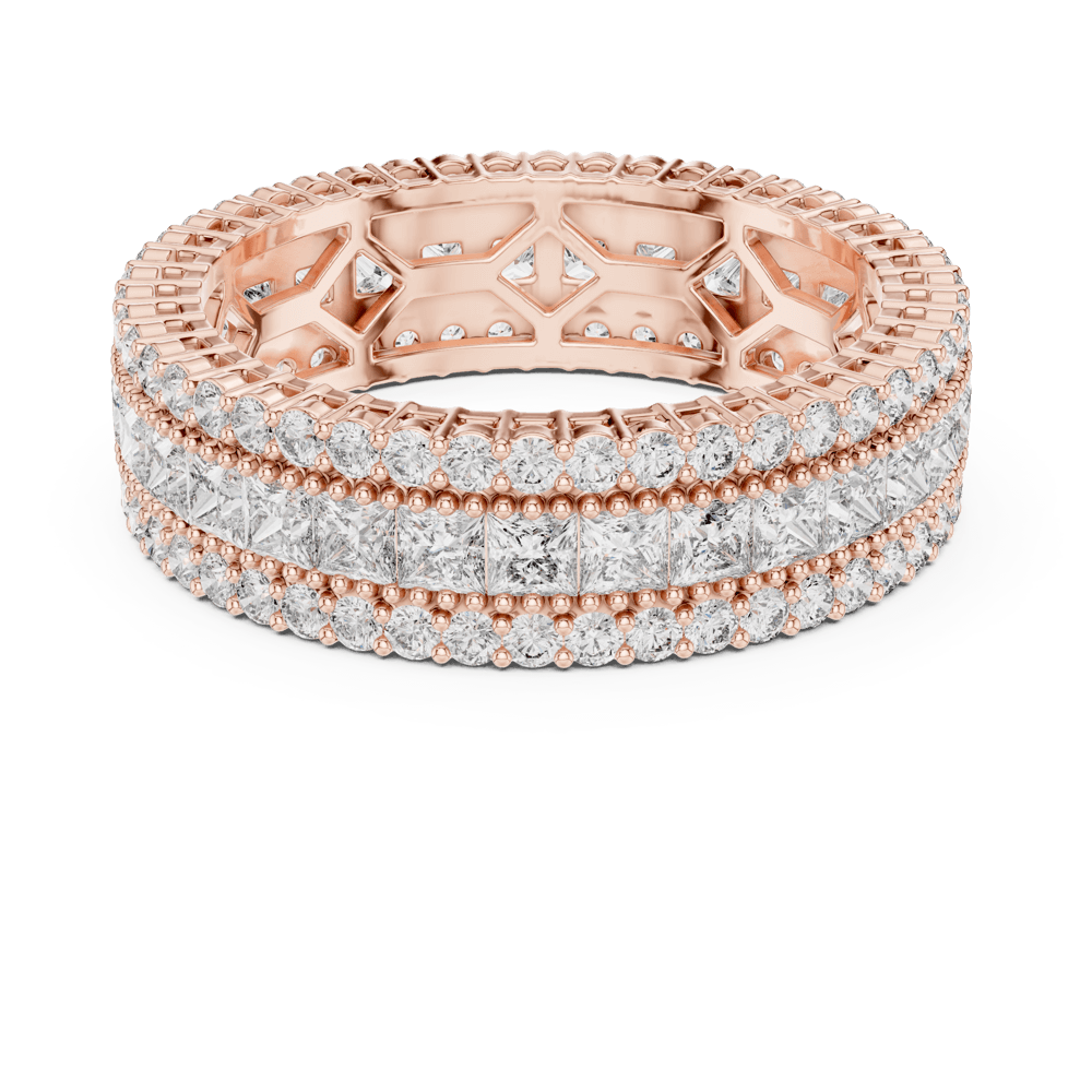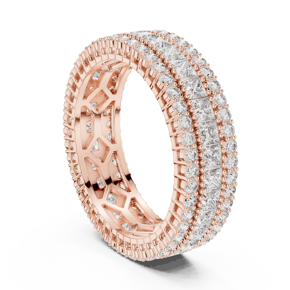 The Triple Princess Band from the Evermore Collection radiates elegance and strength, crafted for those whose love grows deeper with time. Its three glistening rows of diamonds represent enduring devotion — the promise of forever. With intricate detailing and an endless shimmer, this masterpiece embodies a love story that remains pure, powerful, and everlasting — evermore.