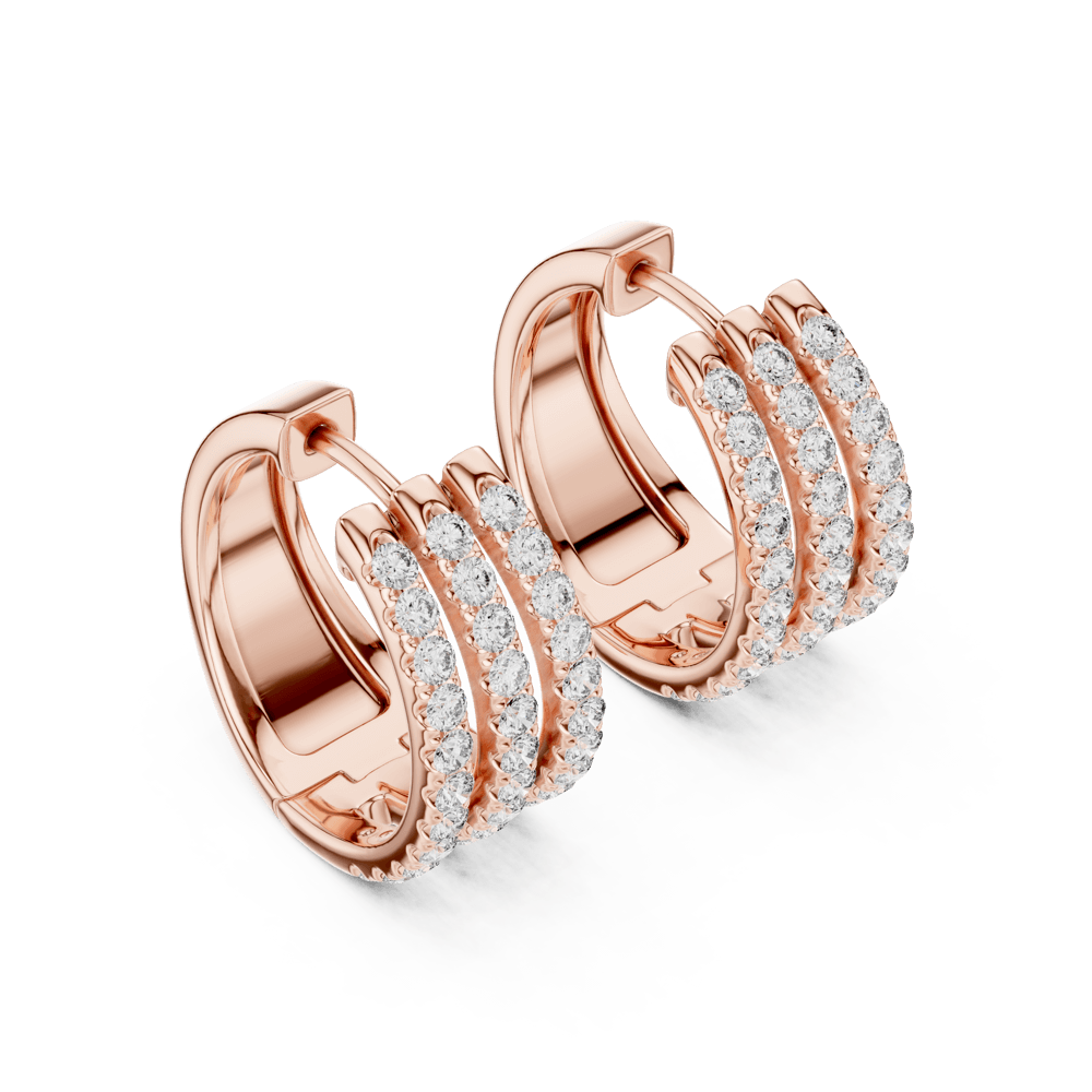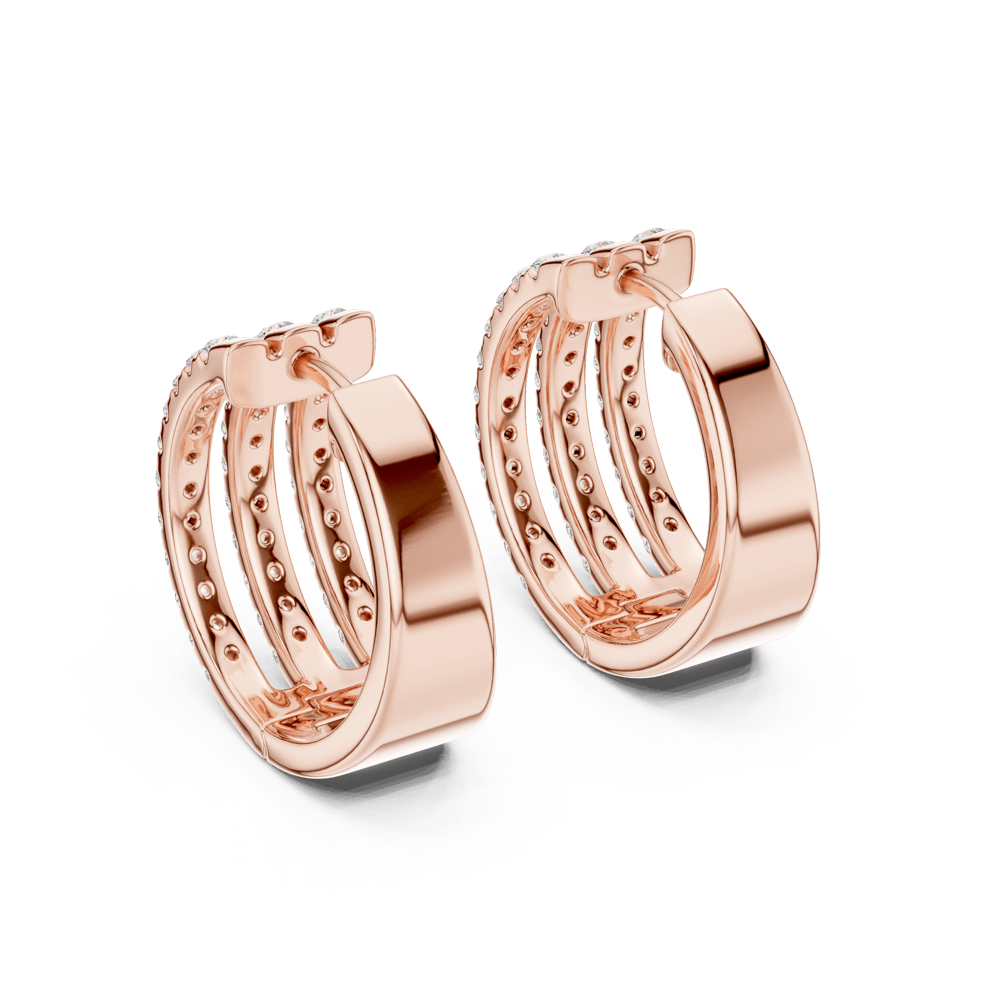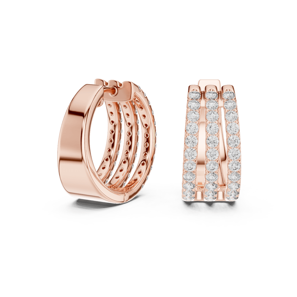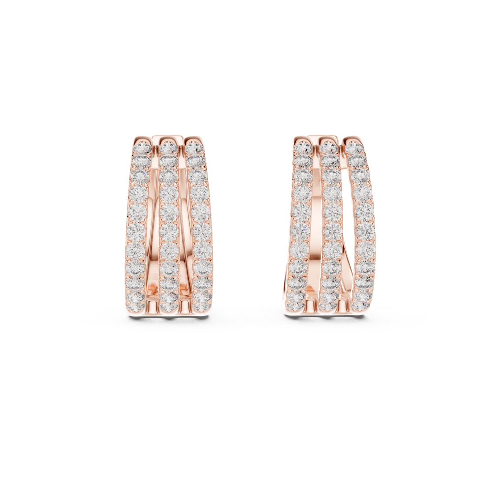 A masterpiece of contemporary allure, the Triple Shine Earrings embody strength, symmetry, and sophistication. Three radiant diamond rows cascade in perfect harmony, creating a luminous rhythm that captures light—and attention—from every angle. Set in warm rose gold, each facet reflects refined craftsmanship and unapologetic luxury. Designed for the modern woman who commands presence effortlessly, these earrings stand as a symbol of brilliance elevated to its peak.
