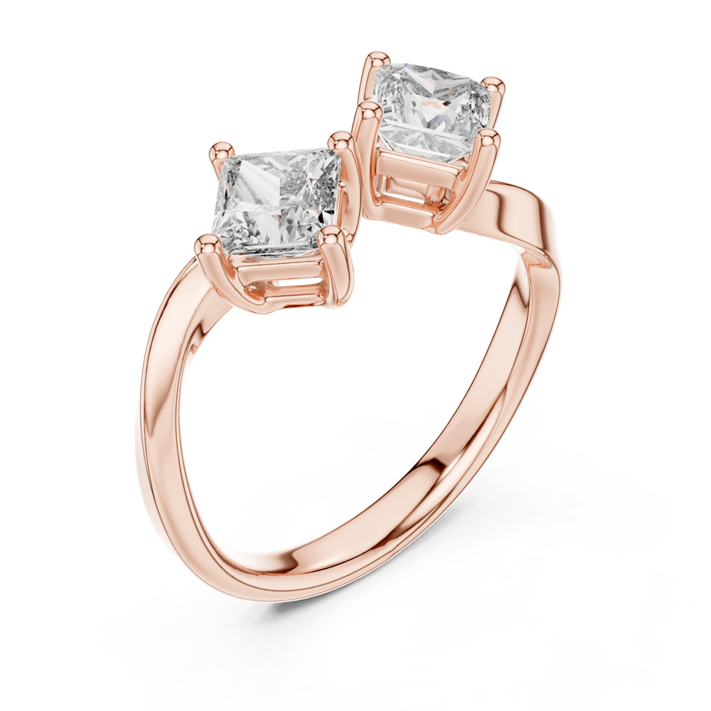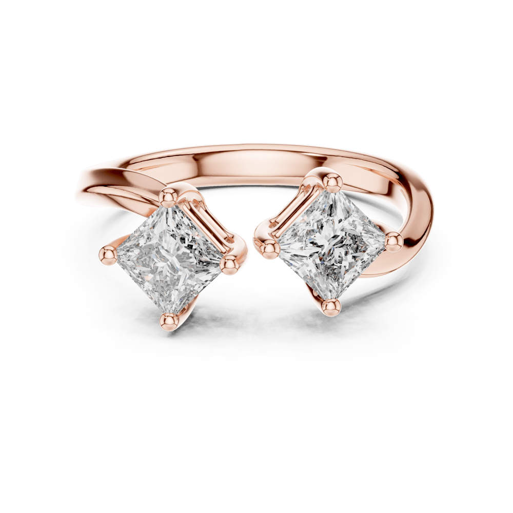 From the Zenith Collection, the Twin Princess Ring redefines modern elegance with its sleek dual-stone design. Two radiant princess-cut diamonds sit side by side, symbolizing unity, duality, and shared strength. Clean lines and contemporary artistry give this ring a distinctive edge — a perfect choice for someone who embraces both tradition and modernity.