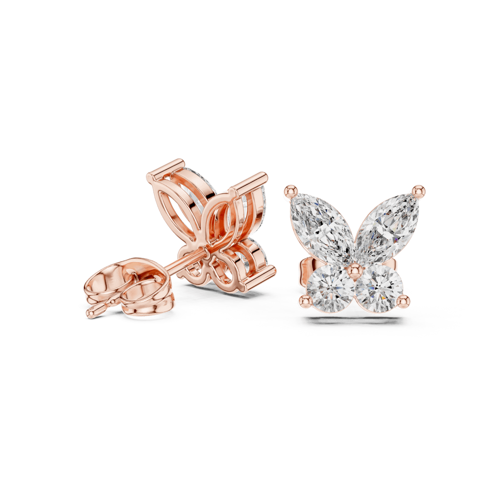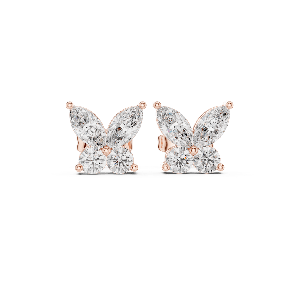 Delicate yet radiant, the Ziya Studs embody the beauty of light in motion. Designed in a graceful butterfly silhouette, each petal-shaped diamond reflects brilliance from every angle — a symbol of transformation, purity, and timeless elegance. Perfect for those who carry their own light wherever they go.